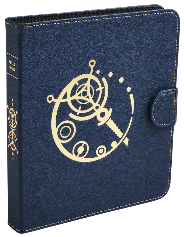 The Spell Codex is compatible with official DnD spell cards and accommodates 160 spells. The codex fits neatly inside a Dragon Shield Player Companion.