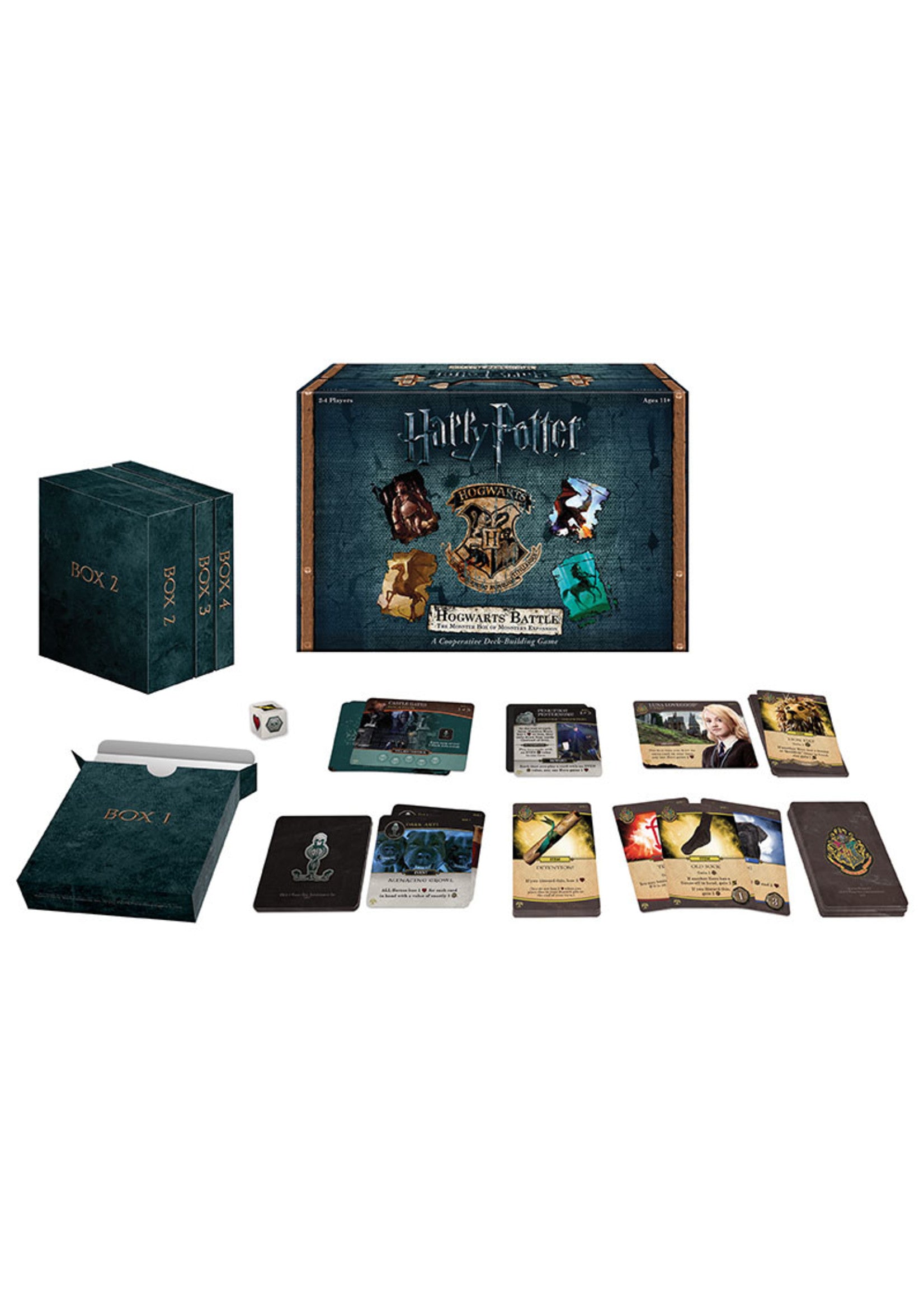 Venture into the Forbidden Forest with The Monster Box of Monsters, the highly anticipated expansion to HARRY POTTER™: HOGWARTS™ BATTLE! Play as Harry, Hermione, Ron, Neville or Luna Lovegood™ as you face frightening creatures and challenging encounters. Beware of any wrongdoing that might earn you detention! Only working together to defeat the evil forces and protecting iconic locations will make the Wizarding World safe once and for all!